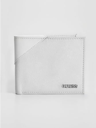 Get a classic designer look with this clean cut wallet. Textured exterior with matte trim. Small silver-tone logo. 3 ½" x 4 ½" 4 credit card holders 2 cash pockets 2 ID slots in flip out pocket Men's Accessories Wallets
