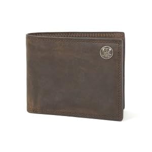 Support Your Favorite Team with this Brown crazy horse leather Passcase wallet w/ collegiate emblem.