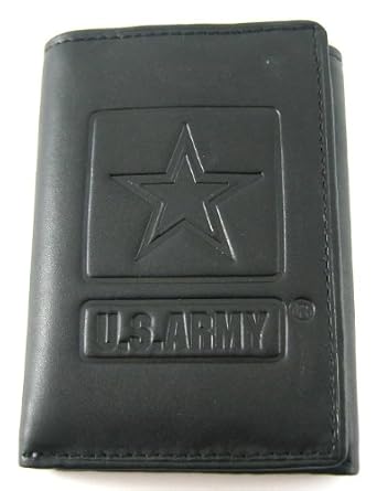 This trifold wallet is designed with the US Army logo embossed on the front of the wallet. When open, this wallet measures approximately 4" x 8.5". The features of this Air Force Wallet are: a trifold design with two lengthwise pouches for bills, 6 credit card slots, two hidden credit card slots and an ID window. Each Army Billfold Wallet comes in a stunning US Armed Forces Collection Gift Box that features the American Bald Eagle and the US flag. Wallet Details Condition: New Brand: Army Color: Black Material: Leather Packaging: US Armed Forces Collection Gift Box